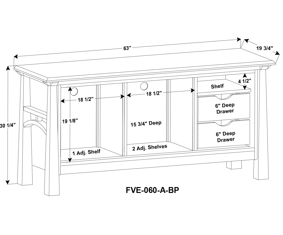 Dimensions: 63″W x 19¾”D x 30¼”H