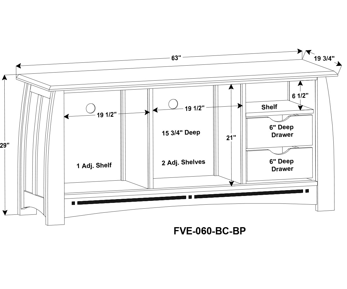 Dimensions: 63″W x 19¾”D x 29″H