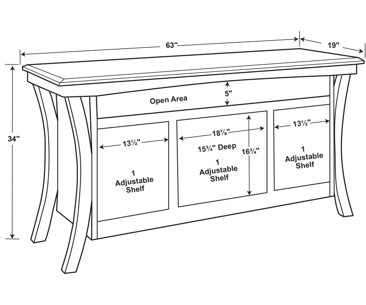 Dimensions: 63″W x 19″D x 34″H
