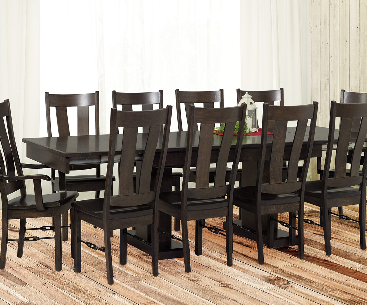 Table shown 42×66 with two 22″ butterfly leaves on the ends quartersawn white oak with aims dark gray #92CSB1865.